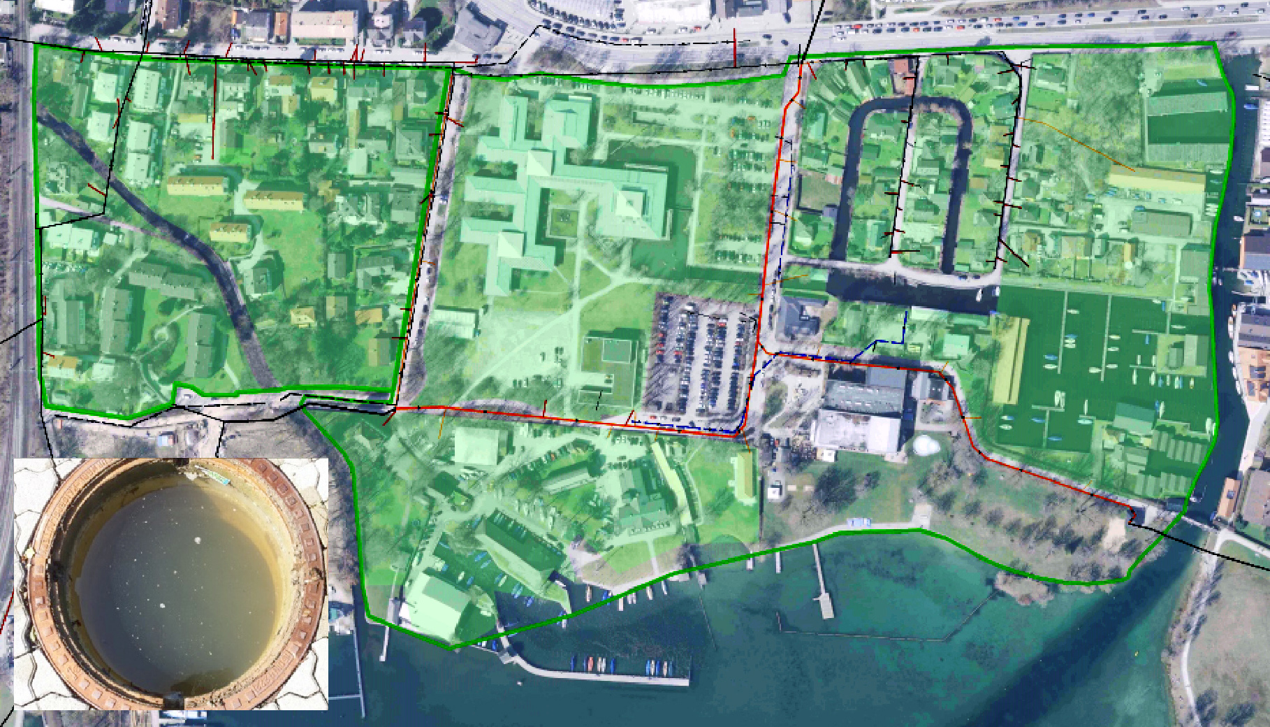 Ein erheblicher Teil des Fremdwassereintrags lässt sich, nach Prüfung der verbandseigenen Kanäle, auf die Grundstücksentwässerungsanlagen (GEA) zurückführen. Der Abwasserverband beabsichtigt nunmehr langfristig alle Grundstücksentwässerungsanlagen im Verbandsgebiet auf Dichtheit hin zu untersuchen. Im ersten Untersuchungsabschnitt wurden 3 Einzugsgebiete mit je 100 Anlagen zur Untersuchung festgelegt. Von diesem erhielt Dorsch International den Zuschlag für den Bereich der Starnberger Wassersportsiedlung, welcher in zwei Teilgebiete aufgeteilt wurde. Durch die Auswertung vorhandener Unterlagen konnten Massen ermittelt werden. Diese Erkenntnisse gingen in die Bearbeitung eines Leistungsverzeichnisses und in die Aufstellung einer Kostenkalkulation mit ein.