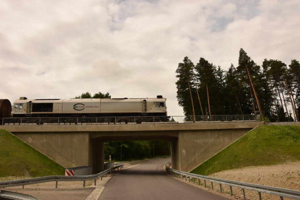 Due to the change requests of the road authorities and the arrangement of the second track, it was necessary to renew the single-track railway overpass over the Polling - Weiding municipal road. Changes to the road facilities were also necessary.