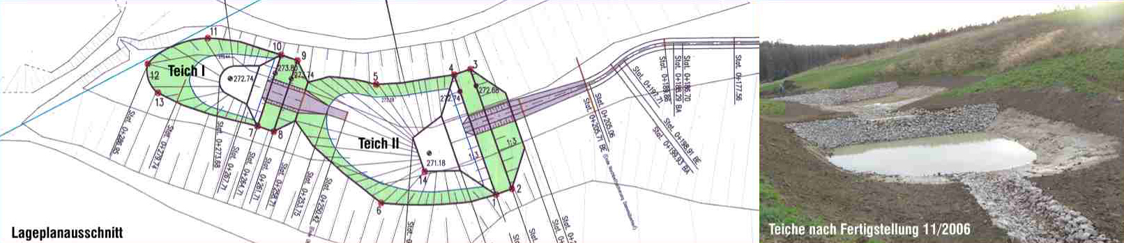 Im Rahmen des LBP zum Bau der S 289 Ortsumgehung Crimmitschau wurden landschaftspflegerische Maßnahmen festgeschrieben, um die Eingriffe in Natur und Landschaft zu kompensieren. Auf dem Flurstück 47/1 der Gemarkung Mark Sahnau befindet sich die externe Ersatzmaßnahme E 1. Der Standort ist ein ausgesprochener Lebensraum für Amphibien und von der Biotopstruktur her als potenzieller Lebensraum für Niederwild geeignet. Diese Standortsituation wird aufgenommen und mit der Maßnahme E 1 strukturell im Sinne des Artenschutzes gefördert und der Biotopverbund entsprechend entwickelt. Bei der Maßnahme E 1 handelt es sich um die Anlage von zwei Teichen (Flächen rd. 150 u. 400 m²) durch Dammeinbau in einer vorhandenen Geländesenke, die Öffnung des verrohrten Wiesenbaches (ca. 200 m) inklusive Herstellung eines Durchlasses (ca. 8 m) im Bereich einer vorhandenen Wegüberfahrt sowie die Anlage von Feldhecken.