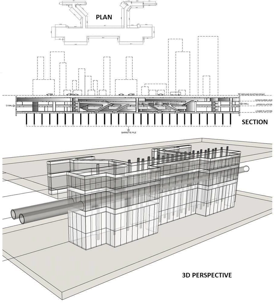 The MRT Orange Line East Project will run for 22.5 km, underground (twin tunnels) for 13.77 km, and elevated for the rest from Thailand cultural centre to Suwinthawong. It will stop at 10 underground stations and 7 elevated stations, comprising 3 interchange stations. The Orange Line East Project also includes the building of a depot and of an OCC sized for those whole lines. The opening of this first section is expected in 2023.