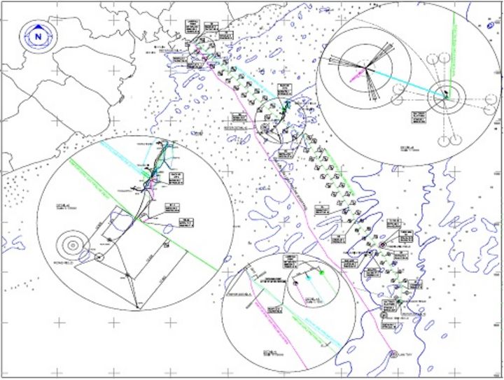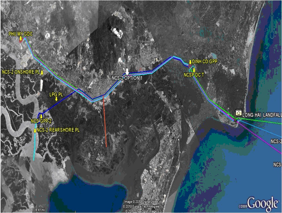 An offshore pipeline, approximate 325 km, starts from The Hai Thach platform, passes the Central Processing Platform of Thien Ung field, Cuu Long basin Bach Ho’s platform and then runs to a landfall station in Long Hai.