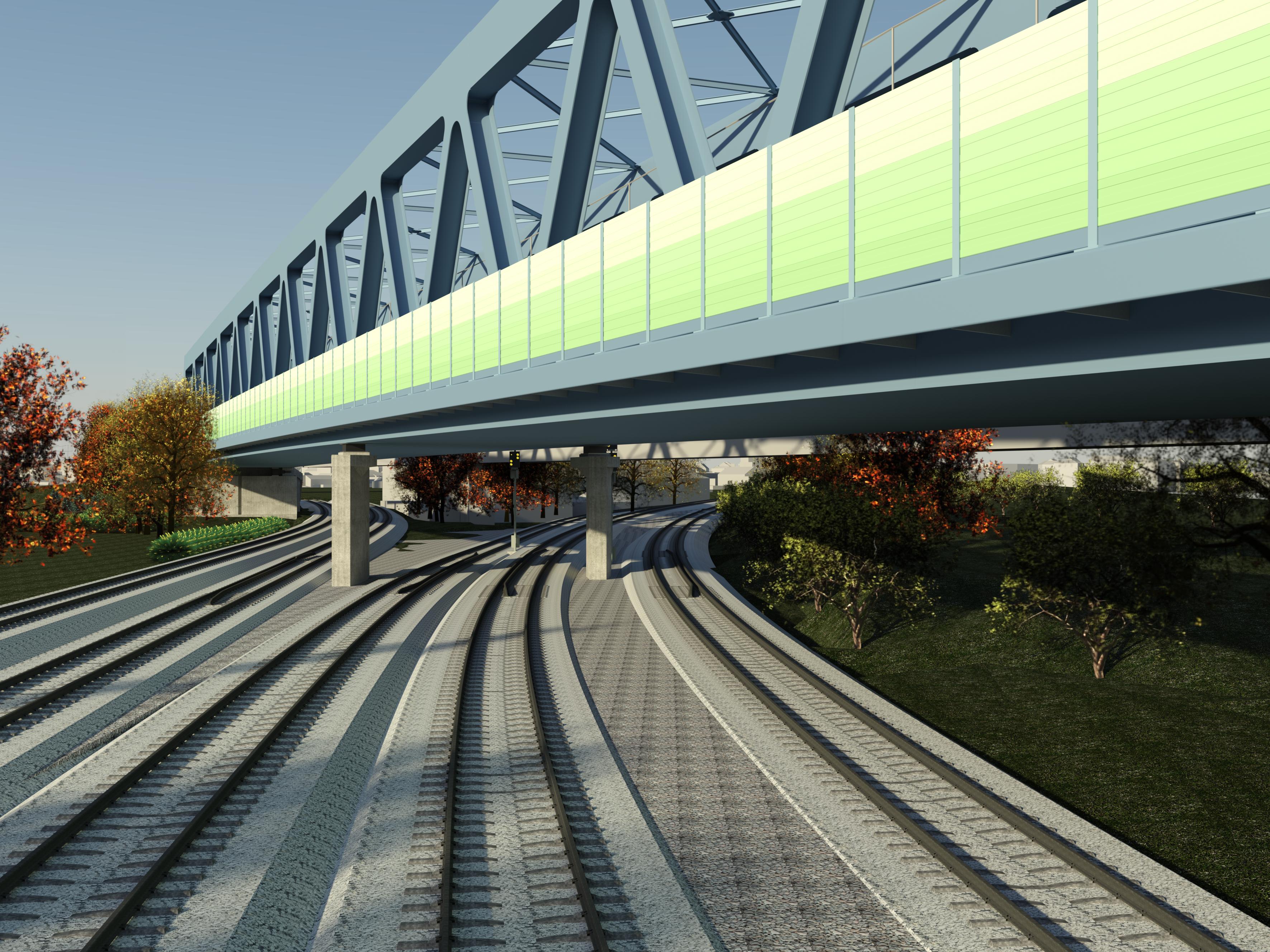The result of the planning is a two-span truss superstructure with constant superstructure thickness in accordance with the regulations and escape routes outside or inside the supporting structure.