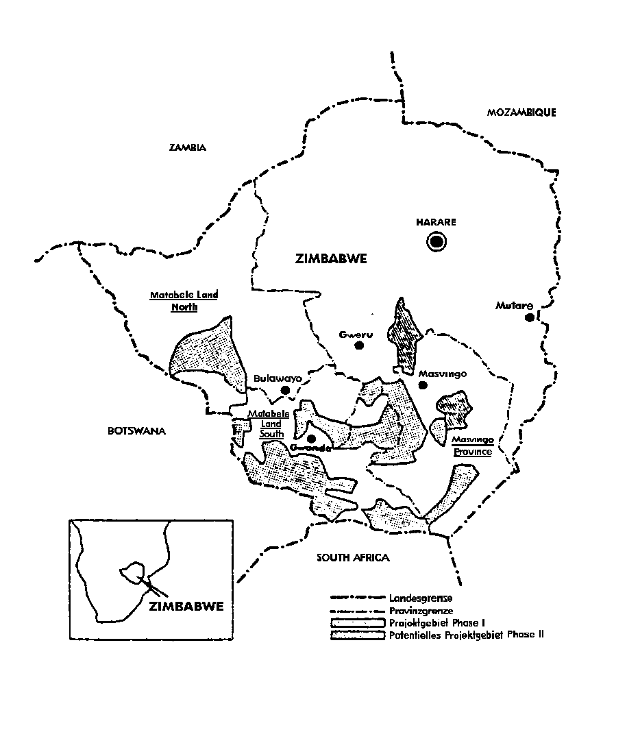 The project concept, which comprised the programming of activities and requirements, was elaborated within the framework of a PPM (Project Planning Method) workshop. The overall goal of the project was to test the technical and economic feasibility of PVP applications, especially in remote rural areas, under normal operational conditions with regard to other energy sources. The Zimbabwe an test programme represented part of a scheme which was going to be implemented by the GTZ, supported by the German Federal Ministry for Research and Technology (BMFT) in combination with the German Federal Ministry for Economic Cooperation (BMZ), in a total of eight developing countries.