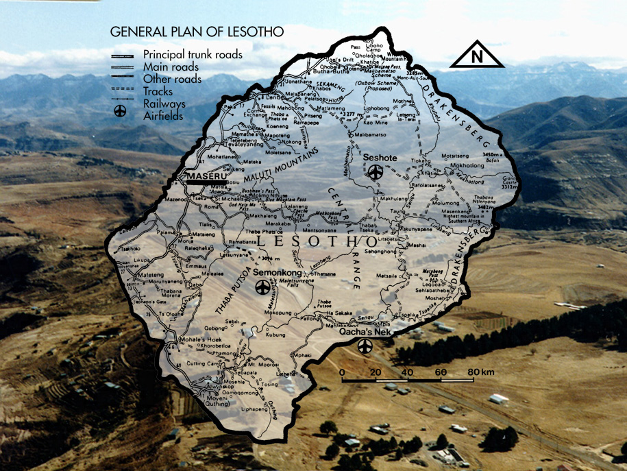 Three major airfields (Qacha's Nek, Semonkong, Seshote) had to be improved to the standard of utility airfields in accordance with FAA requirements regarding runway, taxiway, apron, terminal building, tower, equipment, power and water supply, sewage disposal, etc.