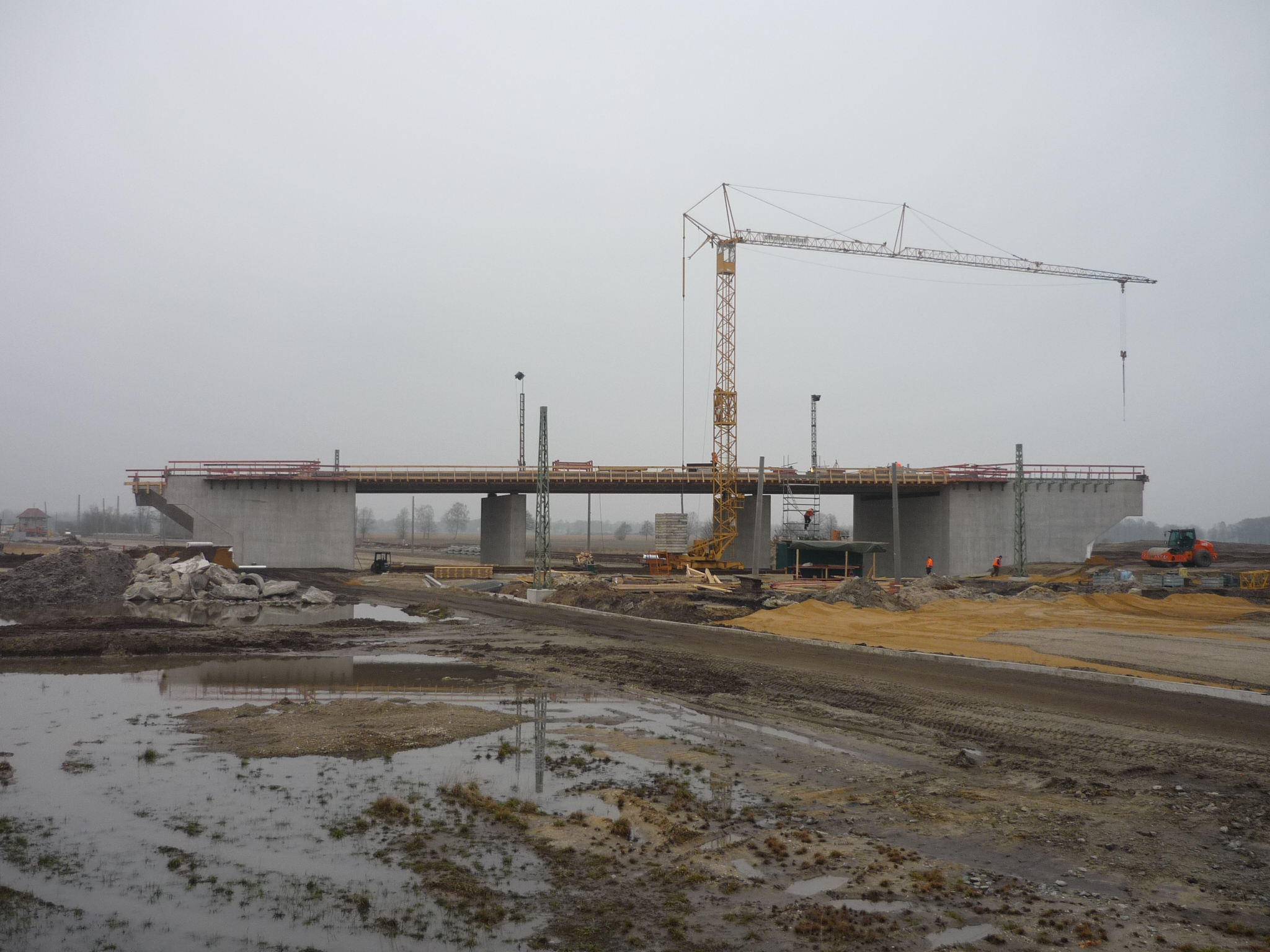 In the area of the Horka freight station, the level crossings between the railway facilities and the two-lane state road will be removed in this context. As a replacement, a road overpass over 3 spans will be built in reinforced concrete construction as a two-span slab beam over the goods station.